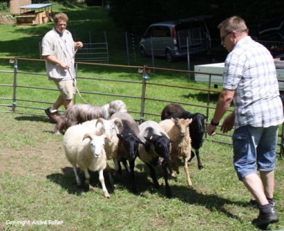 Hier sieht man, wie Bernd versucht die Schafe auseinanderzutreiben. Er macht "Beute", um zu sehen wie seine Jenny reagiert.