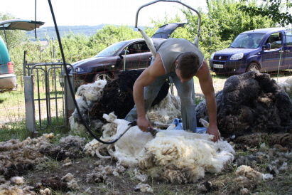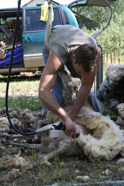 Im letzten Jahr hat André unsere Schafe noch selbst geschert. Doch dieses Jahr war er einsichtiger und überließ es einem Profi die, auf mittlerweile 54 Muttern angewachsene Herde, zu scheren. Für Christian kein Problem.